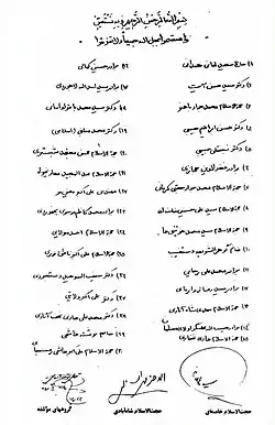 - 1 2 3 Houchang E. Chehabi (1990). Iranian Politics and Religious Modernism: The Liberation Movement of Iran Under the Shah and Khomeini. I.B.Tauris. p. 283. ISBN 1850431981.