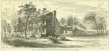 Horizontal wood engraving on a vertical page from Every Saturday, November 25, 1871, page 525, showing an old two-story house surrounded by trees.