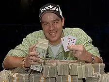 ![]() Hinkle after winning the $1,500 No Limit Hold'em at the 2008 World Series of Poker. | |