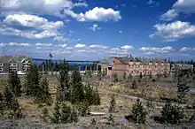 Grant Village is a developed area of Yellowstone National Park, offering lodging, camping and other visitor services. It is located on the southwest side of Yellowstone Lake, about 2 miles (3.2 km) south of West Thumb Geyser Basin. Grant Village was developed by the National Park Service and concessioners under the Mission 66 program, in an effort to relocate land-consuming visitor services and accommodations away from the park's major attractions and sensitive features. Grant Village was planned to allow the removal of development encroaching on the thermal basin at West Thumb. Originally named "Thumb Bay," the development was first proposed in 1955 by Park Service director Conrad L. Wirth to accommodate 2500 visitors with restaurants, gas stations, concessions and a marina.[2]