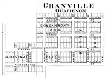 Thomas W. Treckett and Thomas Concannon founded the town in 1834 on the south side of the Wabash and Erie Canal, just south of the Wabash River near the former site of the Native American settlement of Ouiatenon. They platted the town to contain 153 lots, a public square and several streets, with such names as Lafayette, Cherry, Wabash and Washington.[1] This plat is still in effect, with the lots and streets still visible in the county's GIS.[2]