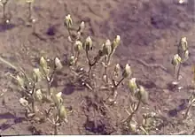 The top of the stem is occupied by an inflorescence that produces centimeter long tubular flowers. Flowers are yellow with white tips and bloom April to September.[2] The plant is threatened by grazing, development, agriculture, recreational activities, and vernal pool loss.[1]