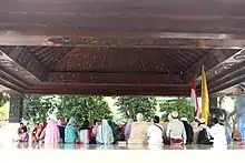 The second type of visitors to the grave are spiritual pilgrims, primarily Muslims. Although veneration of the dead is often considered blasphemy within Islam, there is strong Javanese tradition of visiting "holy men" graves (such as the Wali Sanga), and tens of thousands of Javanese Muslims visit Sukarno's grave each year in order to obtain his spiritual blessing.[1] It is also a popular tourism destination.[12] There is also an annual tradition for the Commander of the Indonesian National Armed Forces to visit the grave annually on each 18 September, the anniversary date for the TNI.[13]