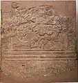 There were a number of grave stelai or stelae found among the six shaft graves at Grave Circle A in the site of Mycenae. These stelai mark the burial sites of the Mycenaean dead, much like modern headstones. At least 21 stelai have been discovered from Grave Circle A, with 12 having identifiable relief sculpture. Most were upright, rectangular slabs of oolithic limestone, ranging in date from 1600 to 1500 BCE.[1] The iconography depicted on these stelai include chariot scenes, hunting scenes, and circular and spiral designs characteristic of the Greek Mycenaean Period.[2] Scholars argue that these scenes demonstrate the prevalence of warfare in Mycenaean culture,[2] in addition to signifying a socially stratified society.[3]