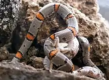 The gray-banded kingsnake (Lampropeltis alterna), sometimes referred to as the alterna or the Davis Mountain king snake, is a species of nonvenomous snake in the family Colubridae. The species is endemic to the southwestern United States and adjacent Mexico. Some sources list two distinct subspecies of Lampropeltis alterna, as L. a. alterna and L. a. blairi differentiated by patterning and locale, but research has shown them to be color morphs of the same species.[4]