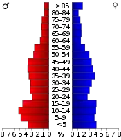 There were 2,045 households, out of which 42.00% had children under the age of 18 living with them, 67.70% were married couples living together, 5.60% had a female householder with no husband present, and 23.90% were non-families. 21.20% of all households were made up of individuals, and 9.40% had someone living alone who was 65 years of age or older. The average household size was 2.82 and the average family size was 3.31.