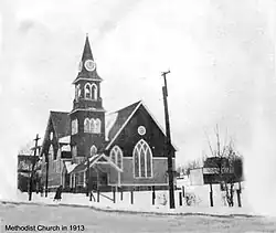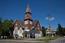 The Gray Memorial United Methodist Church and Parsonage is a historic church complex at 8 Prospect Street in Caribou, Maine. The Gothic Revival wood-frame church, built in 1912-14 for a Methodist congregation founded in 1860, is the most architecturally sophisticated church in Caribou. It was built on the lot of the Colonial Revival parsonage house, which was moved to make way for the church. The complex was listed on the National Register of Historic Places in 1995.[1] The current pastor is Rev. Timothy Wilcox.[2]