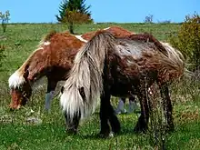 The balds are inhabited by a herd of introduced ponies allowed to run wild within the confines of the park. The ponies are very accustomed to humans and rarely halt their grazing as hikers pass close by. Many locals touch and feed the ponies, though this practice is frowned upon and against park policy. Each year, park officials round up the herd and check for health problems in addition to reducing the herd size if necessary; the excess colts are sold at auction.