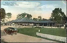 The railroad was chartered in 1836 and began placing rails in Bridgeport Connecticut and on the line from North Canaan, Connecticut in Great Barrington in September 1842.[2] The station was built in 1901 to replace an earlier one on Railroad Avenue.[3] The line ran north to Stockbridge,[4] Lenox Railroad Station, Lee Station. In Pittsfield, it stopped at Pittsfield Depot, and later, at Union Station. Passenger service ended on April 30, 1971.[5] It has been a stop on the Berkshire Scenic Railway. [6][7][8] The station is a contributing property within the Taconic and West Avenues Historic District.[9][10]