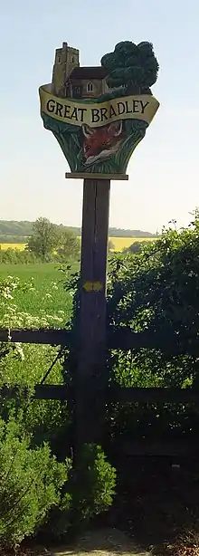 Great Bradley is a village and civil parish in the West Suffolk district of Suffolk in eastern England. According to Eilert Ekwall the meaning of the village name is the "wide clearing". The population is about 400 and includes Little Bradley. There is evidence that people have lived in and around Great Bradley by the River Stour since the middle stone age over 5,000 years ago.