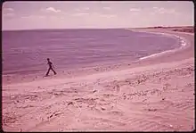 The park's 15 million cubic yards of 1940s-era landfill included sanitary and medical waste.[9] In 2005, radioactive radium (226Ra, once used in cancer treatments) was found in the sand at a depth of about 1–1.5 feet (30–40 cm). Directly at the sources, investigators measured gamma radiation about 200 times higher than the natural background level.[14] Approximately half of the park has been closed to the public since 2009, and in 2021 the National Park Service was working to complete a comprehensive "Remedial Investigation Report" for its long-term decontamination project.[15]