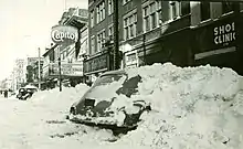 Residential streets were not cleared for several days during which time regular deliveries of coal to homes were impossible.[72] In the cases of sick or disabled persons or other emergency need for coal, the coal companies were undertaking emergency coal deliveries, but were sometimes thwarted due to snow banks blocking residential streets and driveways.[75] Some rural townships just outside the City of had a very difficult time plowing all the local country roads; scores of families in one Township, some needing medical attention and others faced with only minimal food, remained snowbound three to four days after the storm due to snow too deep for the Township's plows.[59] Fifteen people died in the Pittsburgh District, most from heart attacks from shovelling or pushing or digging cars out of snow, but some were pedestrians being hit by vehicles and a few were found dead in marooned cars.[57][59][72][76] Two houseboats in Pittsburgh sank due to heavy snow but no injuries were inflicted.[52]