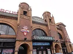 The Hippodrome Circus in Great Yarmouth was built by the showman George Gilbert in 1903[1] and designed by architect Ralph Scott Cockrill. It is one of only two purpose-built permanent circuses in England still in operation, and one of only three in the world with a circus floor that sinks into a pool.[2]