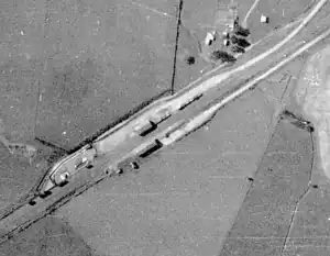 On 11 June 1939 the station was moved about 440 yd (400 m) north-westwards,[12][13] from its original site to the east of Cliff Road.[14] The move, which had been planned in 1915,[15] was associated with work starting in 1935,[16] and for which £4,989[17] was funded in 1938,[18] to ease the gradient and curve on the bank between Greatford and Kakariki[12] to 1 in 70.[19] The realigned curve opened in March 1939 and eliminated two level crossings.[20]