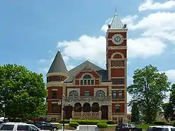 The Green County Courthouse, located on Courthouse Square in Monroe, is the county courthouse serving Green County, Wisconsin. Built in 1891, it is the county's second permanent courthouse. Architect G. Stanley Mansfield designed the Richardsonian Romanesque building. The courthouse was added to the National Register of Historic Places in 1978.