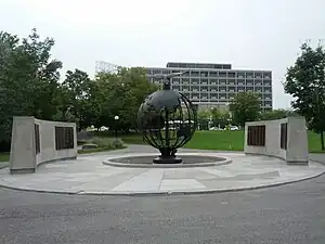 • the Ottawa Memorial was erected in the form of a huge bronze globe by the Commonwealth War Graves Commission and Public Works Canada. The memorial was unveiled by Her Majesty Queen Elizabeth II on July 1, 1959. The Ottawa Memorial commemorates approximately 800 men and women who were in active service or in training with the Commonwealth air forces in Canada, the Caribbean and the United States, who died during the Second World War. They have no known grave, or were buried at remote crash sites that are considered to be inaccessible.[1]