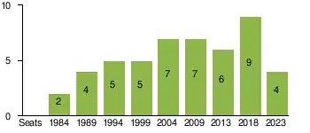 | Election | Votes | % | Seats | +/– |