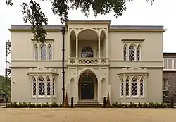 The Rathbone family purchased the freehold of Greenbank House in 1809, the year of William Rathbone IV's death. Following his death, the house was left to his widow Hannah Mary Rathbone for her lifetime.[2] She made a number of substantial alterations to the building. A large part was rebuilt in the Strawberry Hill Gothic style and a cast-iron screen was added to the house to form a verandah and balcony. Internal changes were also made.[1][3]