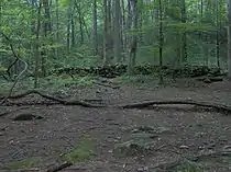 The Greenbrier area contains one of the park's largest concentrations of chimney falls and rock walls, which mark the sites of former homesteads.[34] While most structures were removed in the 1930s, a few are preserved by the park service as representative of pioneer life in Appalachia. The John Messer Barn in Greenbrier Cove and the Tyson McCarter Place along Webb Creek are listed on the National Register of Historic Places, and the Smoky Mountain Hiking Club Cabin has been deemed eligible for the National Register by the Tennessee Historical Commission. Plemmons Cemetery, located near the junction of Middle Fork and Porters Creek, is one of the largest cemeteries found within park boundaries.