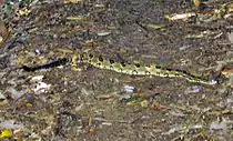 Greenbrier is underlain by a Precambrian metamorphic rock formation of the Ocoee Supergroup known as Roaring Fork Sandstone.[1] This rock type, created from ancient ocean sediments 750 million years ago, dominates the mid-level elevations in the north-central Smokies. As the elevation increases to the south, a thrust fault known as the Greenbrier Fault separates the Roaring Fork sandstone from Thunderhead sandstone and Anakeesta Formation, both of which are common along the Smokies crests. To the north, as the land flattens out (near the park boundary), another thrust fault, the Gatlinburg Fault, separates the Roaring Fork formation from a layer of siltstone, which underlies the foothills around Emert's Cove.[2]