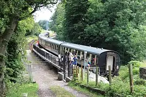 In 1972, British Rail proposed the closure of the line. It was instead sold to the Dart Valley Railway on 30 December 1972 and since then has been operated as a heritage railway.[2] The railway is now promoted as the Dartmouth Steam Railway. In 2012 this new station was opened to attract visitors to the Greenway Estate, which was the home of crime writer Agatha Christie.