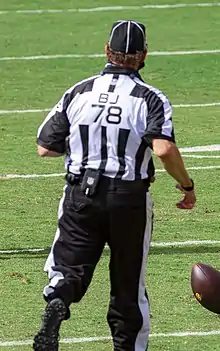Greg Meyer is an American football official in the National Football League (NFL) since the 2002 NFL season. He wears uniform number 78. A graduate of Texas Christian University, he began his football officiating career in 1995 at the collegiate level, including at least three different bowl games. Seven years later, he joined the NFL officiating staff as a field judge, and the following year, he became a side judge, and has been at that position until 2016, when he became a back judge. He officiated a few NFL postseason games, including Super Bowl XLIV in Miami and the Minneapolis Miracle.[1]