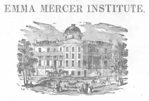At the end of the war, Mrs. Emma Holcombe purchased the school building and its property, reopening it in 1866.[9] No later than August 1867, Holcombe renamed the school Emma Mercer Institute.[7][10]