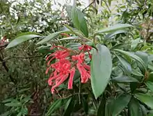 This grevillea is only known from four to six sites in the Bemboka section of the South East Forests National Park, where it grows in forest.[3][5]
