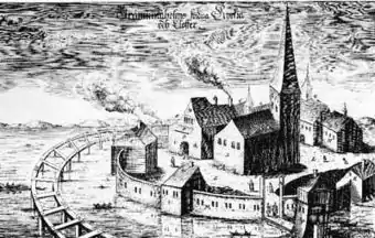 The monastery was founded upon donation by King Magnus III of Sweden in 1270, and in 1288, he also donated the Skeppsholmen area to the abbey. It was because of the abbey that Riddarholmen has been called Gråbrödraholm (Grey Brother's Islet), Munckholmen (Monk's Islet), and Gråmunkeholm or Gråmunkeholmen (Grey Friar's Islet). During the 15th-century, the island of Kungsholmen was also called Munklägret (Monk's Camp) because of the activities of the abbey in the area. At the end of the 15th century, it was headed by Kanutus Johannis, who contributed several volumes to its library.[1] After the Siege of Tre Kronor (castle) on 9 May 1502, the defeated Queen, Christina of Saxony, was kept prisoner here by Sten Sture the Elder.[2]