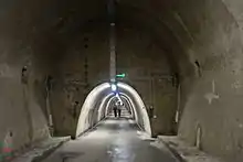 Grič Tunnel (Croatian: Tunel Grič) is a pedestrian tunnel located in the city centre of Zagreb, Croatia, under the historic neighbourhood of Grič (also called Gradec or Gornji Grad), which gave the tunnel its name. The tunnel consists of a central hall, which is connected by two passageways to Mesnička Street in the west and Stjepan Radić Street in the east, and four passageways extending to the south. It was built during World War II by the Ustaše government to serve both as a bomb shelter and a promenade, but following the war it quickly fell into disrepair and disuse. The tunnel saw renewed use only in the 1990s, hosting one of the first raves in Croatia, and functioning as a shelter during the Croatian War of Independence. In 2016, the tunnel was remodeled and opened to the public, serving as a tourist attraction and hosting cultural events. Planned expansions include a museum and a lift.