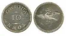 The Griqua coinage was the first community coinage in South Africa[1] and was introduced by the London Missionary Society.