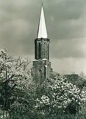 In the 19th century, the population of Aplerbeck increased due to industrialisation. The medieval church Georgskirche was too small.[1] The new church, which was left without a name for a long time, was built from 1867 in Gothic Revival style on a design by Christian Heyden, who built the same church in Gütersloh.[2] A design for galleries, to increase the space for 1,200 people, was never realised.[3]