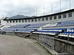 At the 1936 Winter Olympics, the venue hosted the ski jumping event and the ski jumping part of the Nordic combined event. The outrun of the ski jump formed the ski stadium which held the opening and closing ceremonies and the start / finish area of the cross-country skiing competitions.[2]