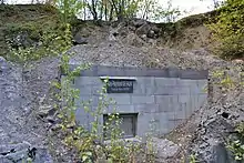 The Grotte de Rosée was discovered in July 1906, following a fire pit in a quarry belonging to the baron Jacques de Rosée. Workers then used the cavity, which appeared as a vertical chimney, to pour hundreds of wheelbarrows of rubble into.[1] On 15 September, a serious exploration was initiated by A. Vandebosch, supervisor at Concasseur des Arwis, and his friend Ernest Doudou.[1] At the bottom of the chimney (about 12 feet long), they discovered a huge room, a domain "much more reserved to fairies and sylphs than to be trodden by the brutal foot of man", according to Doudou; they named that room "the Crystal Palace".[1] Based on a proposal by E. Van den Broeck, who soon visited the place, the cave was named by the owner, who in turn allowed researchers to investigate it,[2] and protected access to it.[1]