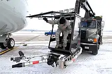 Another infrared system uses mobile, truck-mounted heating units that do not require the use of hangars.[11] The manufacturer claims that the system can be used for both fixed wing aircraft and helicopters, although it has not cited any instances of its use on commercial aircraft.[12]