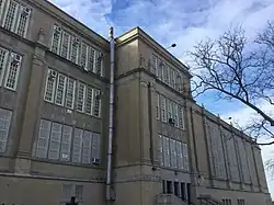 Grover Cleveland High School is a large, comprehensive high school in Ridgewood, Queens. Grover Cleveland High School, Bayside High School, Samuel J. Tilden High School, Abraham Lincoln High School, John Adams High School, Walton High School, and Andrew Jackson High School were all built during the Great Depression from one set of blueprints in order to save money. The school is named after former US president Grover Cleveland.