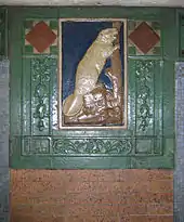 Grueby Faience Company, which still remains better known for its art pottery, also produced glazed architectural tiles, which were impressed in molds. Grueby polychrome glazed tiles can still be seen in the revetments of Interborough Rapid Transit Company subway stations in New York[9] and making up the thirty-six original tile murals in the main lobby of Scranton, Pennsylvania's Lackawanna Train Station (restored in 2007-09).[10]