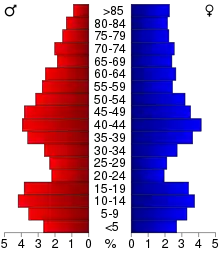 25.20% of the population were under the age of 18, 6.30% from 18 to 24, 25.10% from 25 to 44, 24.10% from 45 to 64, and 19.30% who were 65 years of age or older. The median age was 41 years. For every 100 females, there were 95.70 males. For every 100 females age 18 and over, there were 92.10 males.