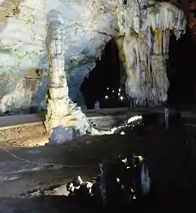 The Grutas de Cacahuamilpa National Park in Guerrero, Mexico, is best known for the Grutas de Cacahuamilpa Caverns. It is also home to the Grutas of Carlos Pacheco, a smaller system, as well as two subterranean rivers which have carved out tunnels in the rock.[2] The park has outdoor pursuit attractions such as rappelling, and rock climbing in Limontitla Canyon.[2] as well as the two underground rivers to explore. It also has a small botanical garden, a pool and places to camp.[3]
