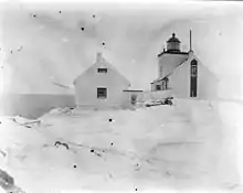 The original lighthouse was built in 1865. It was a square light tower attached to the front of a two-story keeper's house. It was located near the current lighthouse. That lighthouse was closed and demolished in 1959 and replaced with an automated light tower nearby.[2]
