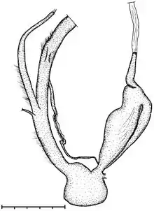 Drawing of the reproductive system of Gudeodiscus messageri raheemi. Scale bar is 5 mm.