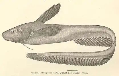 The family Ateleopodidae is made up of four genera and within that thirteen species: Ateleopus, Ijimaia, Parateleopus, Guentherus.[3] Ateleopodids are located primarily near tropical and subtropical waters; with Ateleopus, Parateleopus, and Guentherus located in the Pacific and Ijimaia located in the Atlantic.[4]