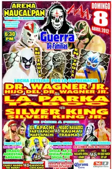 - 1 2 3 4 Mexicool, Rey (April 9, 2012). "IWRG (Resultados 8 de abril): La Dinastía Wagner triunfa en la "Guerra de Familias" – Los Perros canadienses llegan a Naucalpan – Presentes Silver King Jr. y Mini Silver King". Súper Luchas Ring (in Spanish). Retrieved May 7, 2016.