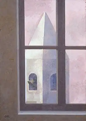 In 1921 he participated in designing and decorating D'Annunzio's Vittoriale; he had already designed the sets for his tragedy La nave. Towards the end of the decade he became a member of the Novecento Italiano group, whose poetics also influenced later works such as the mosaic Justice Entering the Courtroom (1939) in the Palazzo di Giustizia in Milan. During subsequent decades his paintings acquired an ever greater degree of geometric abstraction, while he continued to work as a set designer and to contribute to various art periodicals. He designed the sets for the first opera production at the Teatro alla Scala in Milan following its reconstruction after bombing during the Second World War. Verdi's Nabucco opened on 26 December 1946.[1]