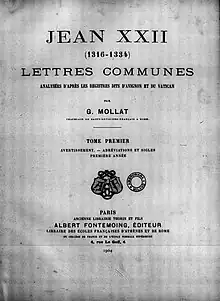 - Jean XXII (1904). Lettres communes (in Latin). Vol. 1. Paris: A. Fontemoing.