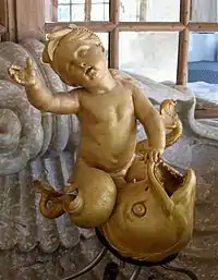 Guillielmus de Grof or Willem or Wilhelm de Grof (Antwerp, baptized on 13 November 1676 – Munich, 15 February 1759) was a Flemish sculptor, metal caster, stucco maker, frame maker and cabinet maker. After training in Antwerp he worked in Paris and Munich as court sculptor. In Paris he was a court sculptor to King Louis XIV and in Munich he was employed by the Elector Maximilian II Emanuel of Wittelsbach.[1] He is known for his large scale equestrian portraits as well as small scale decorative sculptures. He was one of the great pioneers of Rococo art in Munich. His style combined the court style of Louis XIV with the exuberant Flemish Baroque, which had its roots in Rubens' works. He had an important influence on the development of sculpture in Bavaria and Vienna.[2]