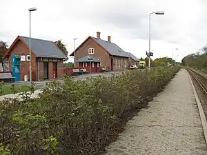 Like the other stations on the Esbjerg–Struer railway line, the still existing station building from 1874 was built to designs by the Danish architect Niels Peder Christian Holsøe (18261895), known for the numerous railway stations he designed across Denmark in his capacity of head architect of the Danish State Railways.[3]