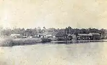 Large-scale logging operations began in Gulf Hammock after the American Civil War.[23] In 1865, the Eberhard Faber pencil company built a mill in Cedar Key to cut slats of southern red cedar (Juniperus virginiana), which were sent to New York City to be made into pencils. The Eagle Pencil Company soon built their own mill in Cedar Key for producing cedar slats.[26] Many of the red cedar trees sent to the mills were cut in Gulf Hammock. By the 1890s the red cedars had been over-exploited, and production was falling.[27] In 1896 a hurricane knocked down large numbers of red cedar trees in Gulf Hammock and along the adjacent coastline.[28] The Eagle Pencil Company mill was destroyed, while the Eberhard Faber mill lost 3,000 cases of cedar slats, as well as unprocessed timbers, at a loss of around $40,000.[29] Damage to the Eberhard Faber mill was repaired following the storm, but it closed just two years later due to a shortage of cedar wood.[30] The over-exploitation of red cedar in Gulf Hammock in late 19th century had long-lasting effects. Large stumps were still present a century later, and new growth had not yet reached the girth of those stumps.[27]