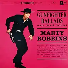 Gunfighter Ballads and Trail Songs is the fifth studio album by Marty Robbins, released on the Columbia Records label in September 1959 and peaking at number 6 on the U.S. pop albums chart. It was recorded in a single eight-hour session on April 7, 1959,[1] and was certified Gold by the RIAA in 1965[2] and Platinum in 1986.[3] It is perhaps best known for Robbins's most successful single, "El Paso," a major hit on both the country and pop music charts, as well as for its opening track, "Big Iron," a song that gained a resurgence in popularity online as an internet meme after its inclusion in the 2010 video game Fallout: New Vegas.[4]