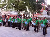 The most important activity of the year is making daily pilgrimages during Gunla to Swayambhu and other Buddhist sites playing Gunla music. The main days during the holy month are Bahidyah Swahwanegu (बहीद्यः स्वःवनेगु), when devotees playing Gunla music visit sacred courtyards to view the images of Bahidyah (Dipankara Buddha) and paubha paintings put on display for the festival;[6] and Nisala Chhawanegu (निसला छा:वनेगु), when offerings are made to Swayambhu and concerts are held at one's neighborhoods. Gunla musical bands also lead processions during New Year's Day of Nepal Sambat.